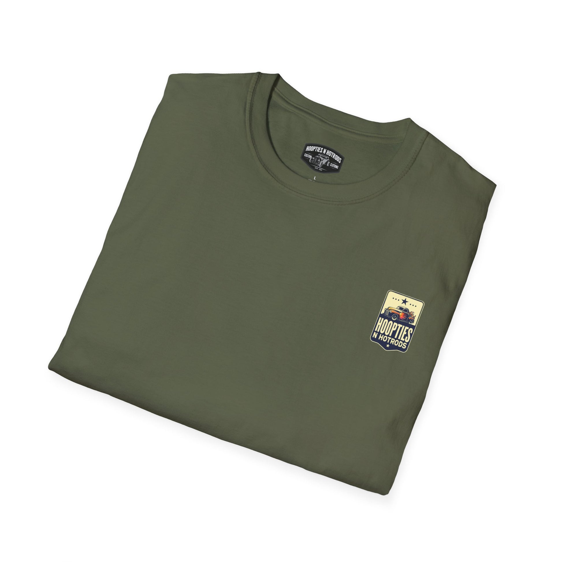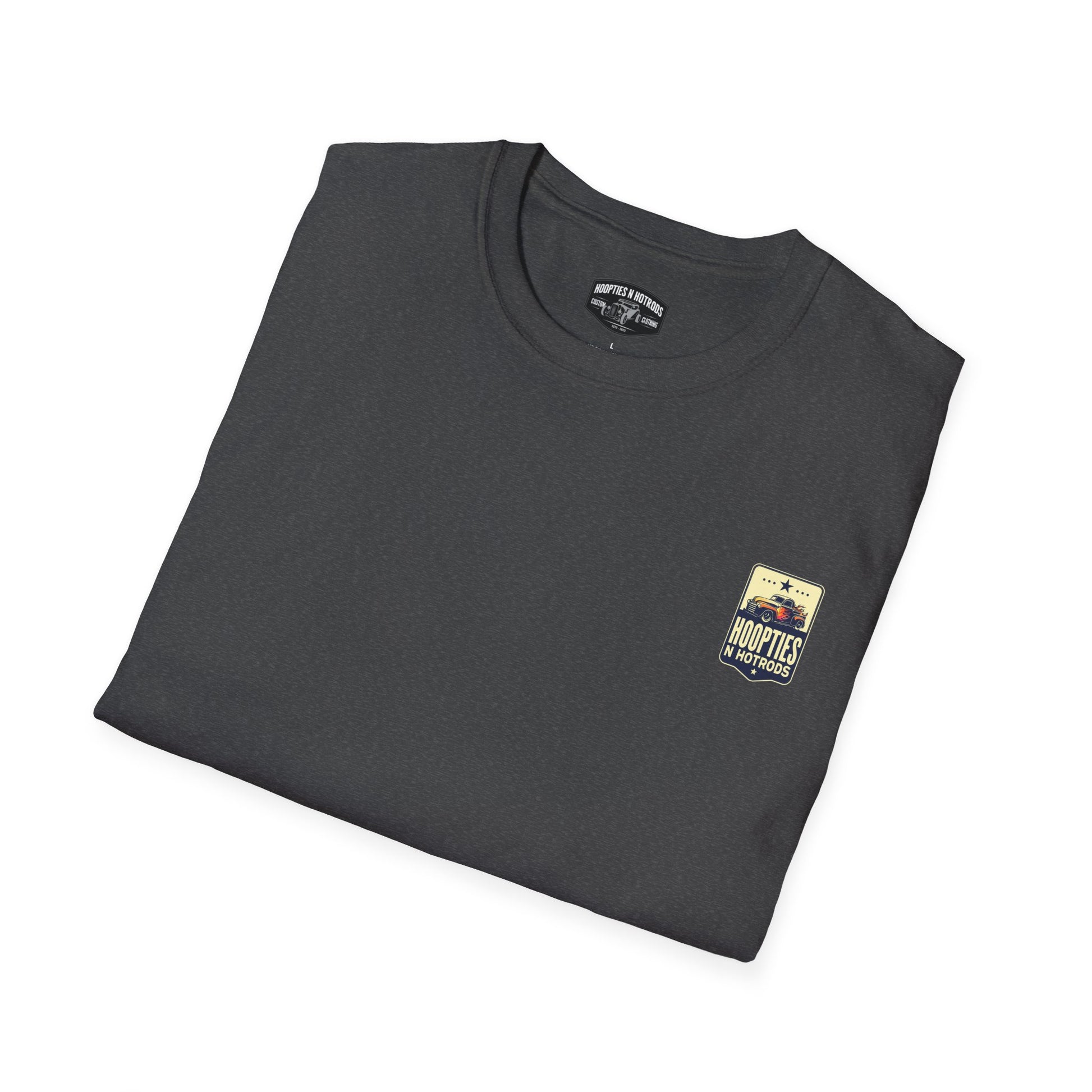 - Printed using DTF/DTG methods; small chest badge and large back graphic